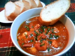 茹でたこ足3本 カットトマト1/2缶 アンチョビ2枚 にんにく2片 白ワイン大2