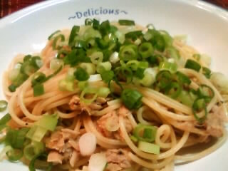 残り物で作ってみたw基本はペペロンチーノw(*´ω`*)美味しかったw