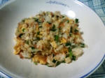 炒める。米を加えて炒め、油がまわったらAを加え弱めの中火にし、煮立ったら