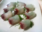 エビはさっと塩茹でする。イカは内臓を除き胴は輪切り、足は食べやすく切る。