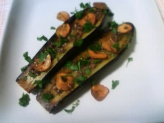 なすを器に並べソースを塗り、にんにくとイタリアンパセリを散らす。