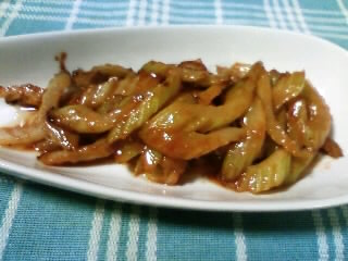 *ふき1kgの時は、砂糖100g 醤油180cc みりん80cc 酢小1
