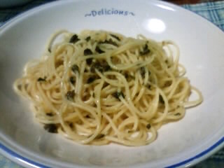スパゲティー160g ふきのとう4個 にんにく(みじん切り)1片