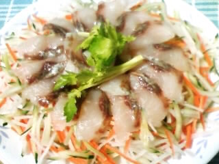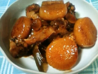 A大根5cm 人参1/2本 こんにゃく1枚 生姜1片 みりん・砂糖各大2 酒大1