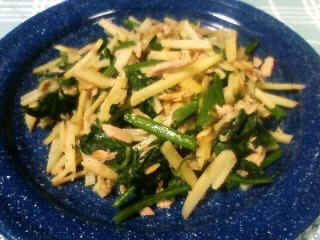 アンチョビを加え炒める。ふきのとうを加え塩・コショーで味をととのえ、茹でた