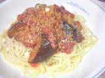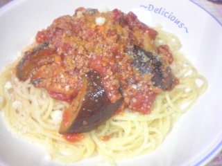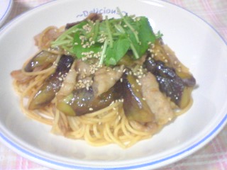スパゲティー160g なす2本 豚薄切り肉100g にんにく(みじん切り)1片