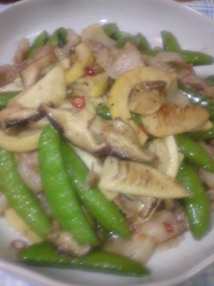 スナップえんどう150g 竹の子(はちく)1本 椎茸2個 アンチョビ3枚