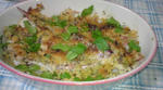 パセリを加えさっと混ぜ、茹でたスパゲティーを加え、和える。