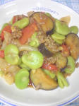空豆2カップ なす1本 玉ねぎ1個 合挽きミンチ100g トマト2個