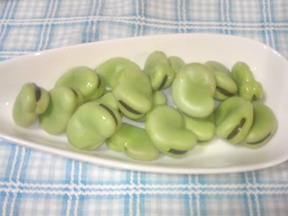 空豆を茹でる時は、切れ目を入れておくと剥きやすい。