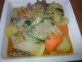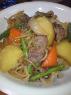牛こま切れ肉100g じゃがいも2個 たまねぎ1個 人参1/2本