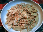 器にモモ肉としめじを盛る。